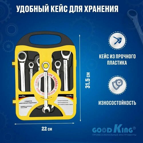 Набор трещеточных ключей LIT (от 8мм до 19мм, 7 предметов), с шарниром