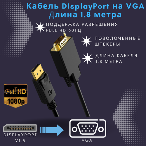 Кабель DisplayPort на VGA 1.8 метра Full HD 1080p 60Hz провод