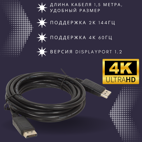 Кабель DisplayPort на Displayport 4K 1.2v (1,5 метра)