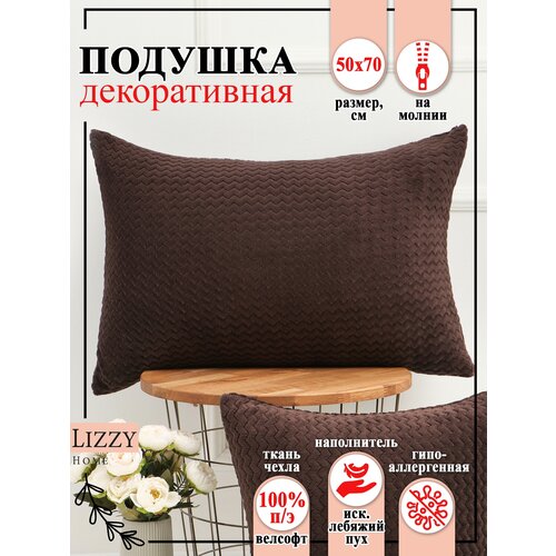 Наволочка Lizzy Home велсофт на молнии 50х70 цв. мокко