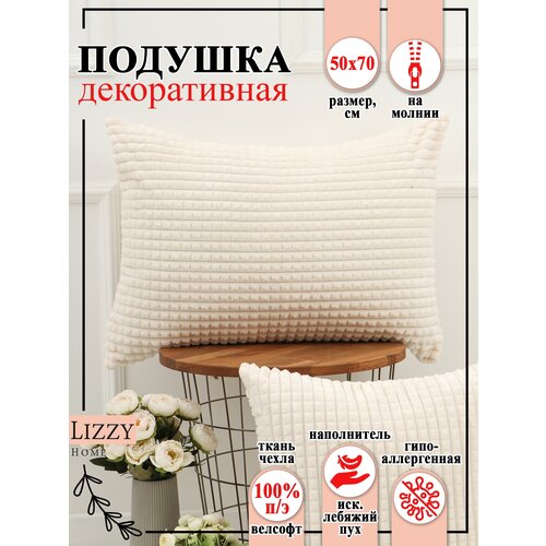 Подушка декоративная Lizzy Home 50х70 велсофт цв. молочный