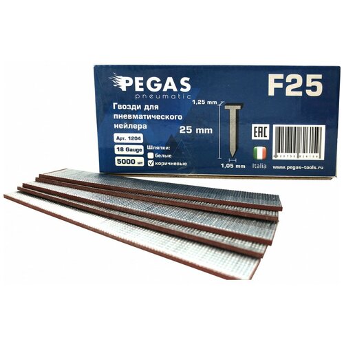Отделочные гвозди Pegas pneumatic F25, длина 25 мм, 5000 шт, сечение 1,25 мм 1204