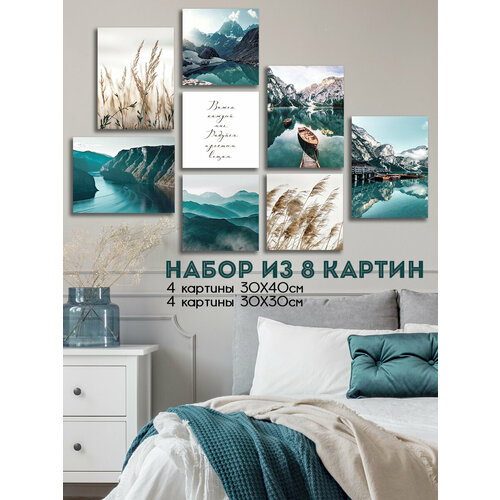 Картины на холсте с подрамником LOFTime лодка горное озеро 8 шт К-374-3040