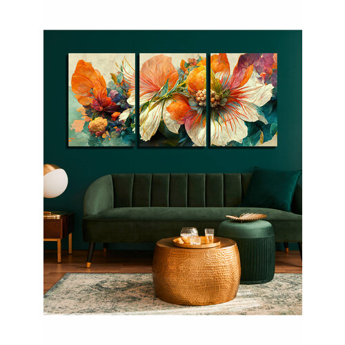 Картина на холсте LOFTime 3шт 70х50 цветы 3D ЗЕЛ оранж К-415-5070