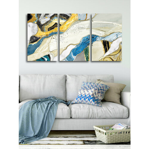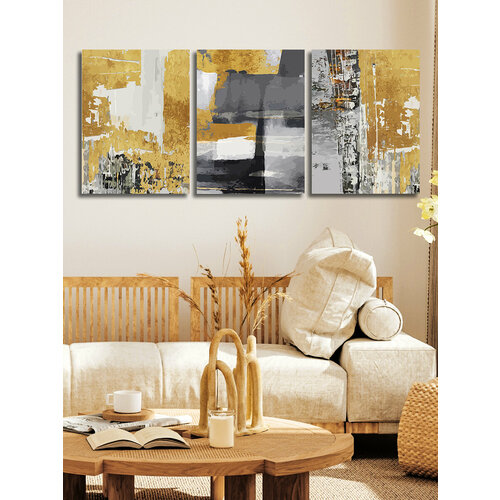 Картины на холсте с подрамником LOFTime 3 шт абстракция СЕР золото 30Х40 К-451-3039