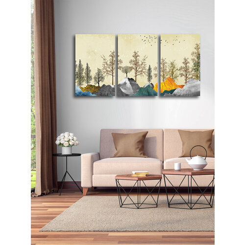 Картина на холсте LOFTime 3шт 35Х55 абстракция ЛЕС желт 1 К-400-5535