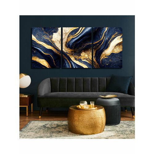 Картина на холсте LOFTime 3шт 70х50 абстракция 3D темн СИН ЗОЛ К-423-5070