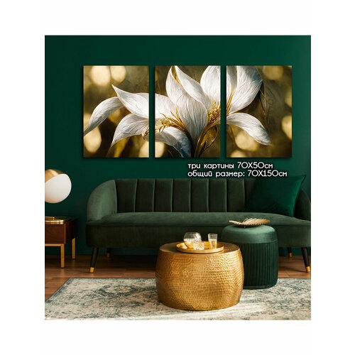 Картина на холсте LOFTime 3шт 70х50 цветы 3D ЗЕЛ ЗОЛ К-405-5070