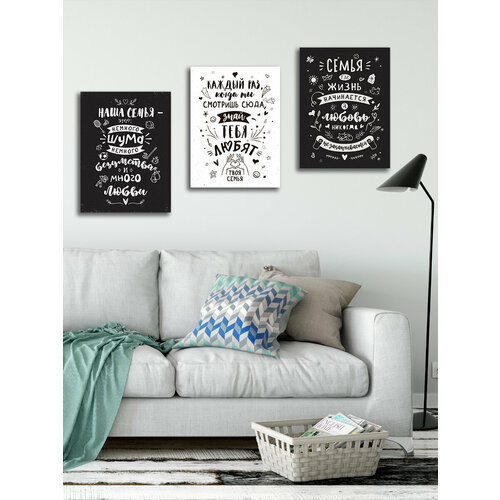 Картины на холсте с подрамником LOFTime 3 шт мотиваторы семья черн 30Х40 К-318-3040