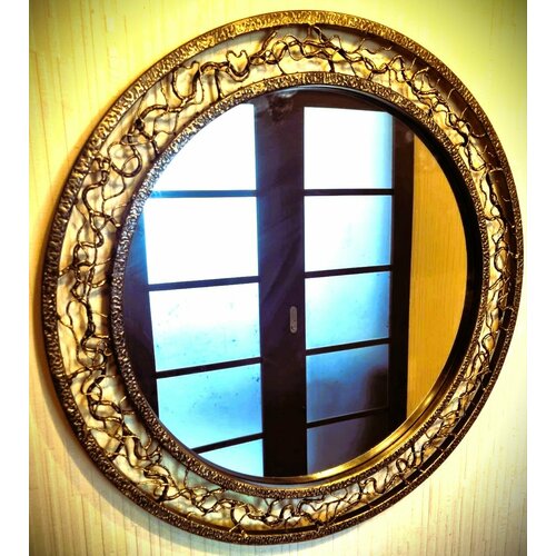Кованое зеркало золото, настенное, круглое, дизайнерское