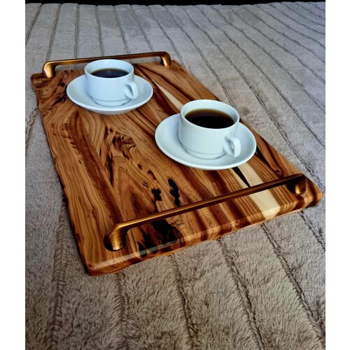 Сервировочный поднос ручной работы, с ручками, массив абрикоса, дизайнерский