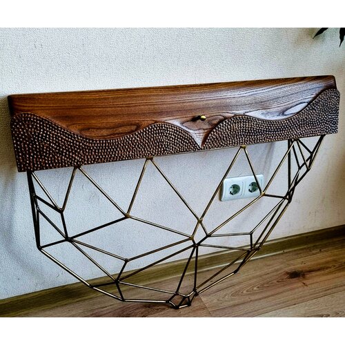 Консоль (120 см), в прихожую из массива дерева карагач, подвесная, дизайнерская, с ящиком, металлическое основание.