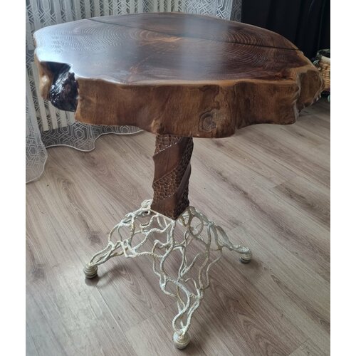 Стол из спила карагача, витое кованое подстолье, эпоксидная смола, дизайнерский