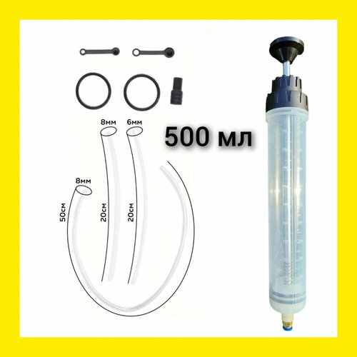 Шприц большой 500 мл, для любых технических жидкостей и герметиков, трубка 100см в подарок!