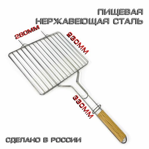 Решётка-гриль из нержавеющей стали на мангал для овощей, сыра, мяса, рыбы, грибов 28х23 средняя