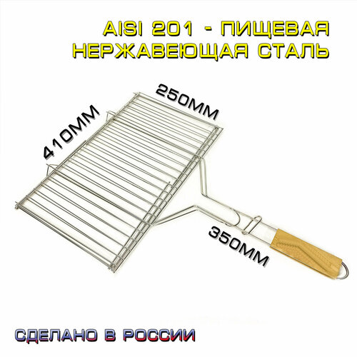 Решётка-гриль из нержавеющей стали на мангал для мяса, рыбы и овощей 41x28 со съемными ножками