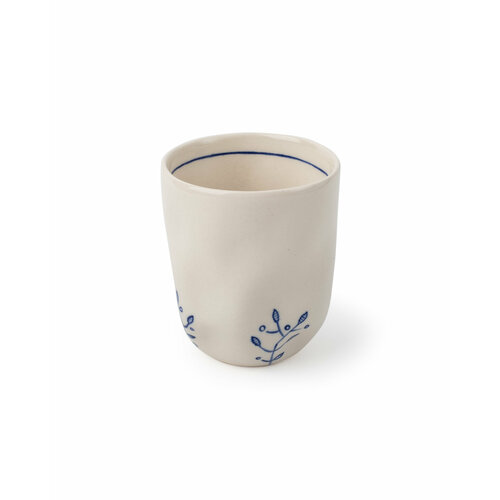 Стакан "Кустик" Лукоморье керамика, 150 мл, белый с синим, ручная роспись