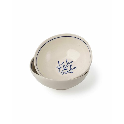 Пиала "Кустик" Лукоморье керамика, 180 мл, белая с синим, ручная роспись