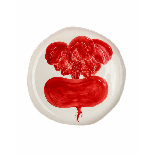 Тарелка "Репка" Лукоморье керамика, 23 см, белая с красным, ручная роспись
