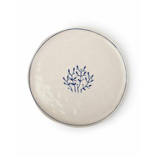 Тарелка "Кустик" Лукоморье керамика, 23 см, белая с синим, ручная роспись