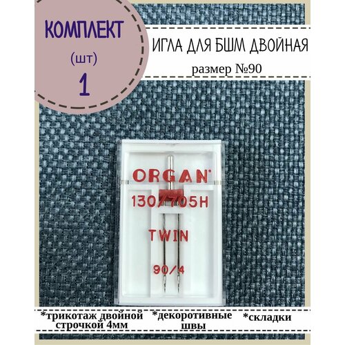 Иглы для бытовой швейной машины двойные №90 Organ, в пенале 1 шт, комплект 1 пенал