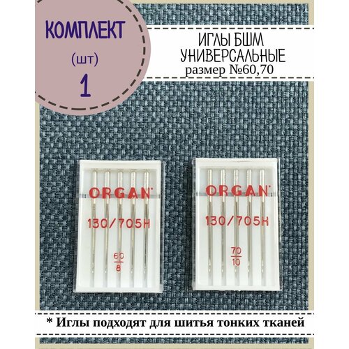 Иглы для бытовой швейной машины универсальные Organ для тонких тканей №60, №70, в пенале 5 шт, комплект 2 пенала