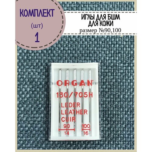 Иглы для бытовой швейной машины Organ для кожы №90,100 в пенале 5 шт, комплект 1 пенал