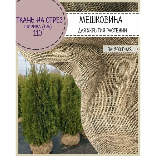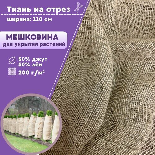 Ткань Мешковина натуральная джутовая для растений/ткань упаковочная, ш-110 см, Джут 50% / Лен 50 %, пл. 200 г/м2, на отрез, цена за пог. метр
