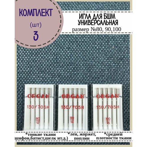Иглы для бытовой швейной машины универсальные Organ №80,90,100 в пенале 5 шт, комплект 3 пенала