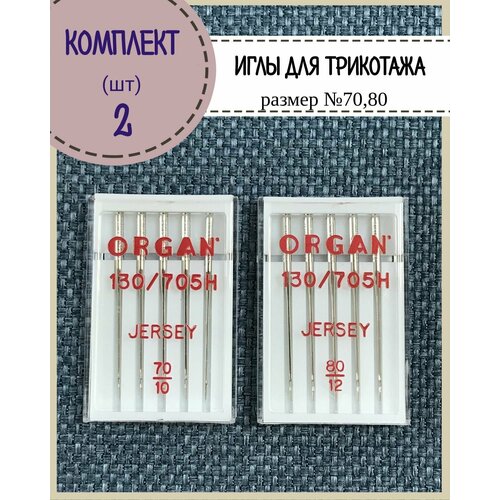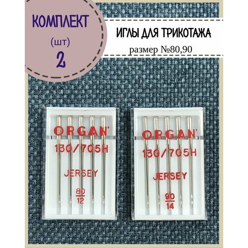 Иглы для бытовой швейной машины трикотажные/джерси и универсальные Organ в пенале 5 шт, комплект 2 пенала