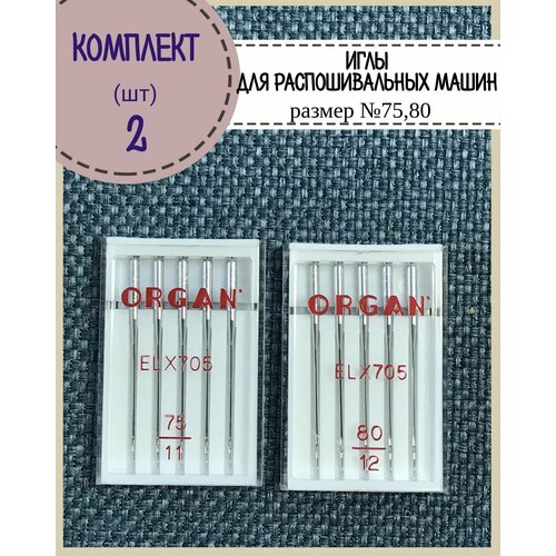 Иглы БШМ Organ для распашивальной машины № 75,80 в пенале 5 шт, комплект 2 пенала