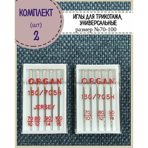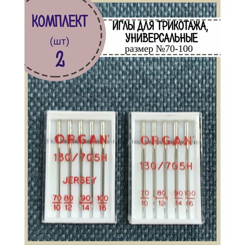 Иглы для бытовой швейной машины универсальные/трикотажные (джерси) Organ №70,80,90,100 в пенале 5 шт, комплект 2 пенала