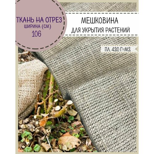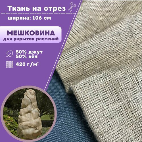 Ткань Мешковина натуральная джутовая для растений/ткань упаковочная, ш-106 см, Джут 50% / Лен 50 %, пл. 420 г/м2, на отрез, цена за пог. метр