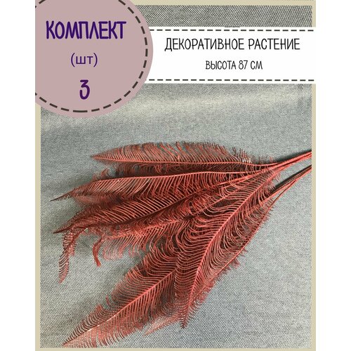 Искусственные цветы декоративные ветка перья "Онти"/растение декор для дома/офиса, комплект 3 шт, высота 87 см , цвет бордовый