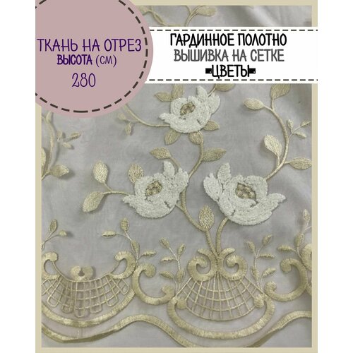 Ткань Сетка/тюль для штор "Цветы", высота 280 см, цв. бежевый на отрез, цена за пог. метр