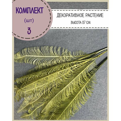 Искусственные цветы декоративные ветка перья "Онти"/растение декор для дома/офиса, комплект 3 шт, высота 87 см , цвет зеленый