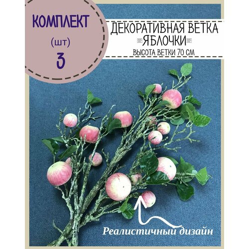 Декоративная ветка с яблочками, высота 70 см, комплект 3 шт