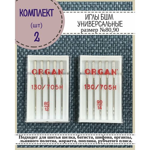 Иглы для бытовой швейной машины универсальные Organ №80, №90, в пенале 5 шт, комплект 2 пенала