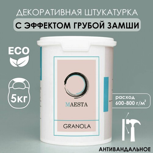 Декоративная штукатурка, 5кг, рельефная Granola, эффект грубой замши