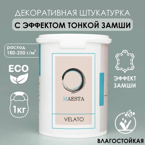 Штукатурка декоративная, рельефная VELATO, 1 кг, бархатисто-матовое покрытие для внутренней декоративной отделки стен