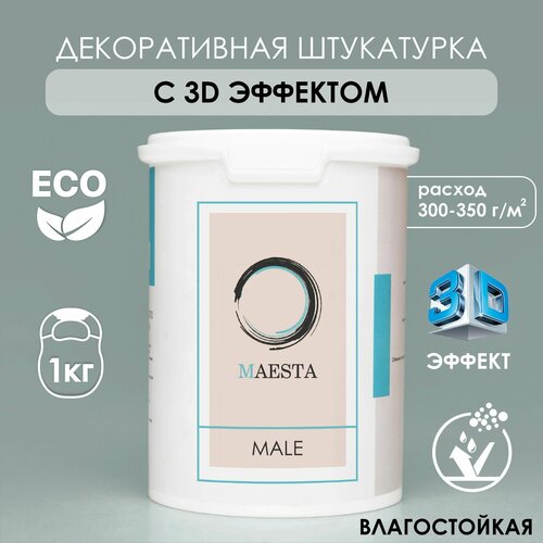 Декоративная штукатурка, 1кг, матовая Male, бархатистое покрытие для декоративной отделки стен