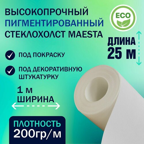 Стеклохолст малярный под покраску грунтованный 200 гр, 25 м