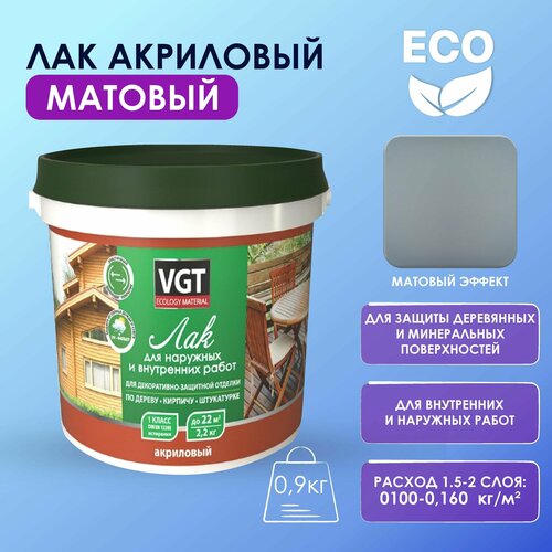 Лак акриловый, 0.9 кг, для наружных и внутренних работ, матовый, бесцветный