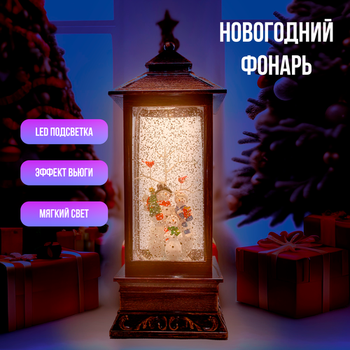 Новогодний светодиодный фонарь Снеговики, 28см, светящийся, музыкальный, USB