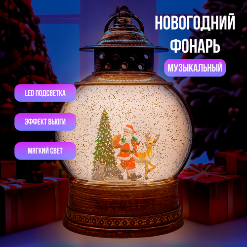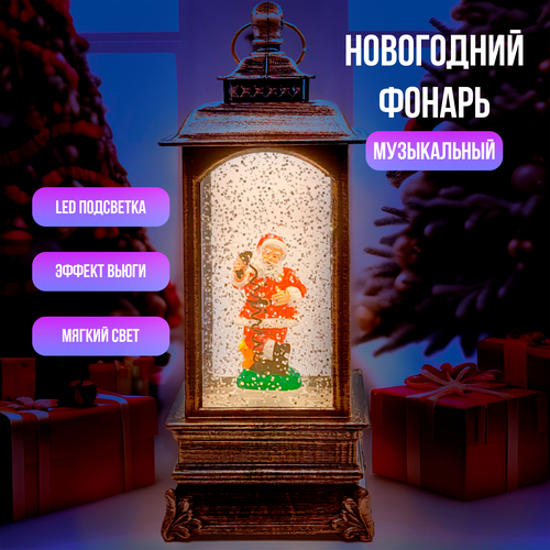 Новогодний светодиодный фонарь Дед Мороз, 21см, светящийся, музыкальный, USB