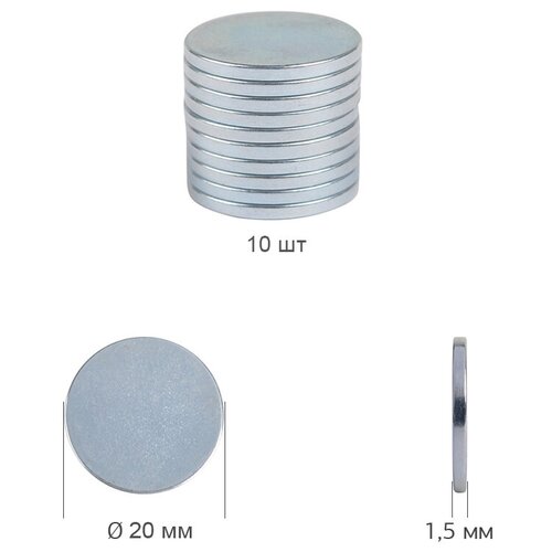 Магнит неодимовый диск, диаметр 20мм, толщина 1,5мм, арт. TBY. A4, упаковка 10шт.