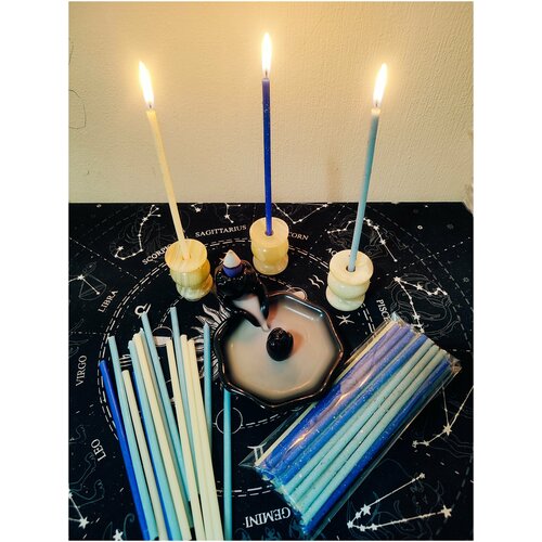 Фиолетовые, голубые, белые восковые, магические свечи 30 штук для ритуалов и энергетических практик
