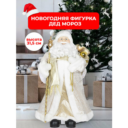 Дед Мороз под елку фигурка игрушка новогоднее укражение декор для дома 31.5 см золотистый