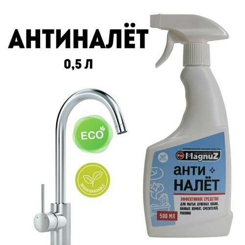 Антиналет чистящее средство спрей для ванной, душевых кабин и сантехники от известкового налета и ржавчины 500 мл Magnuz-PRO