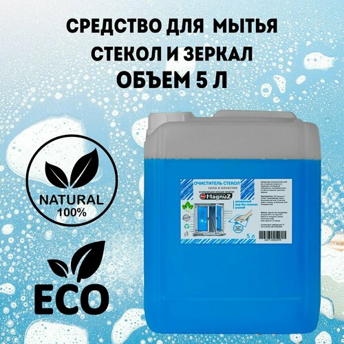 Средство для мытья окон, стекол и зеркал без разводов 5 литров. Профессиональный гипоаллергенный очиститель Magnuz-PRO
